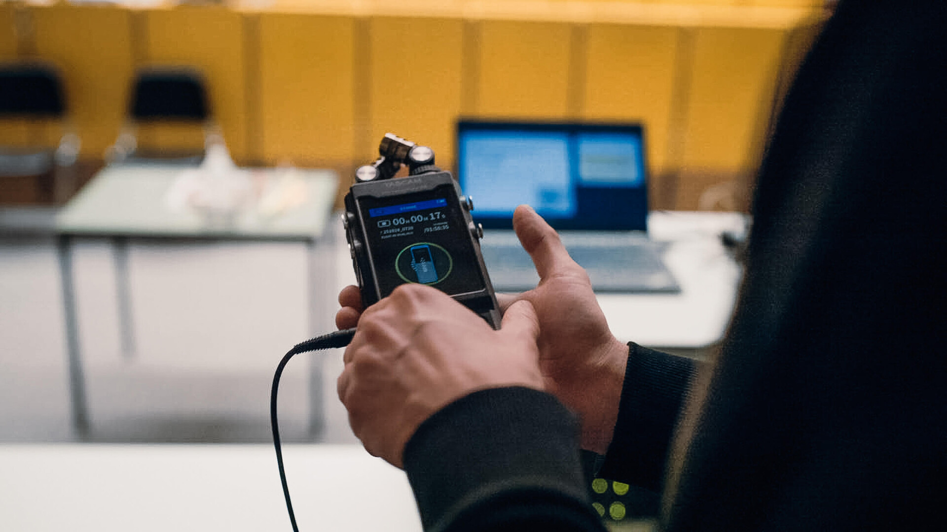 Loop-Künstler Konrad Kuechenmeister auf der Suche nach dem Quantensound beim Exzellenzcluster ctd.qmat. © Tobias Ritz